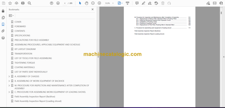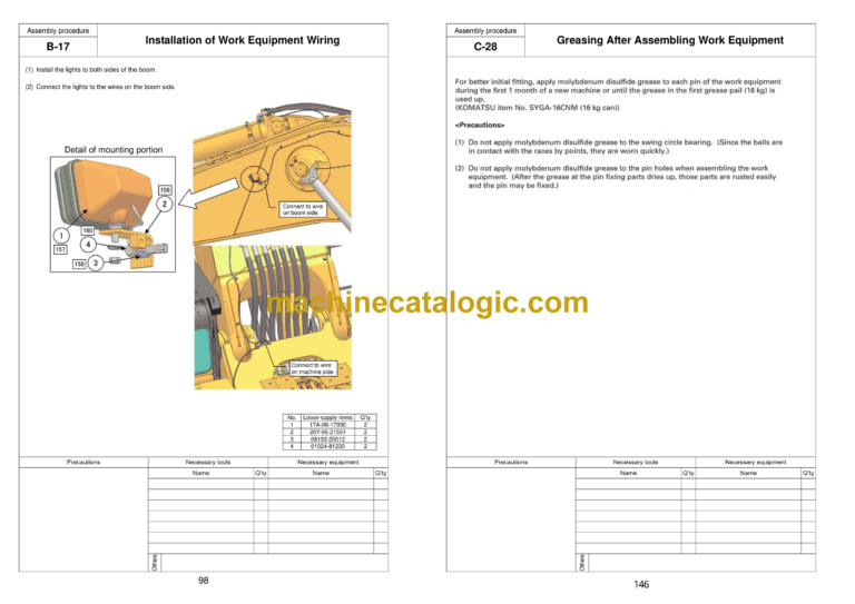 C. PROCEDURE FOR ASSEMBLING WORK EQUIPMENT OF LOADING SHOVEL
