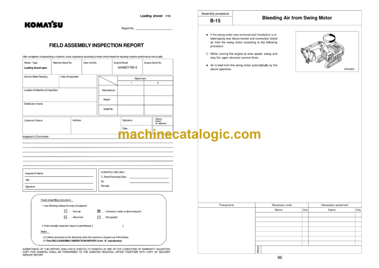 Komatsu PC1250-8 PC1250LC-8 PC1250SP-8 Hydraulic Excavator Field Assembly Instruction (GEN00055-08)