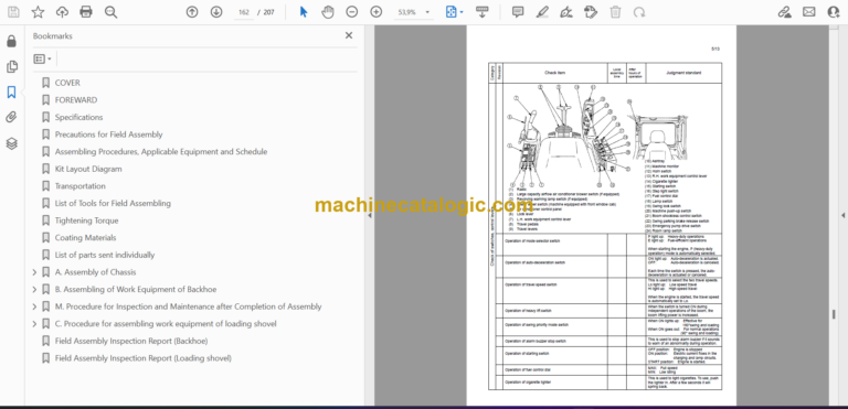 Field Assembly Inspection Report (Backhoe)