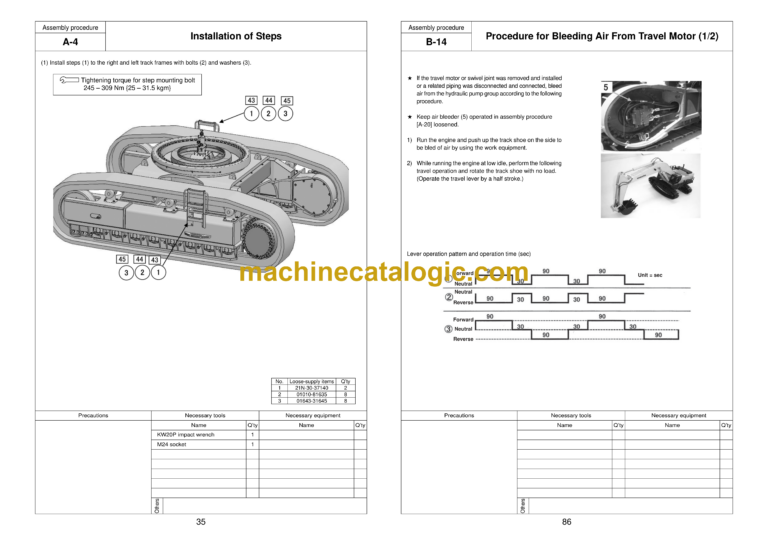 A-20. Preparation for Bleeding Air from Travel Motor …………………………………………….. 60