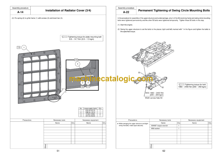 A-22. Permanent Tightening of Swing Circle Mounting Bolts ………………………………….. 62