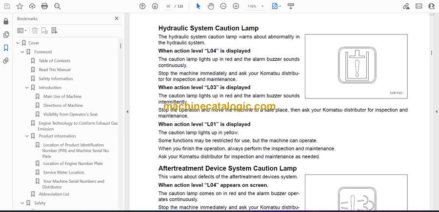 Komatsu PC130-11, PC130LC-11 Hydraulic Excavator Operation and Maintenance Manual (TEN01148-00)