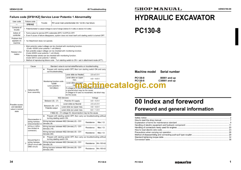 Komatsu PC130-8 Hydraulic Excavator Index: