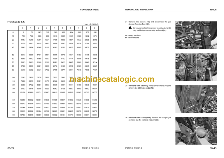 Komatsu PC14R-3 PC14R-3HS PC16R-3 PC16R-3HS Hydraulic Excavator Index: