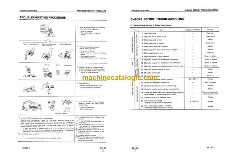 Komatsu PC150-3 PC150LC-3 Hydraulic Excavator Index: