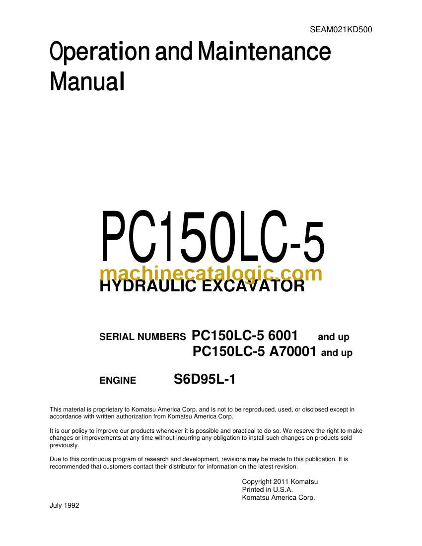 Komatsu PC150LC-5 Hydraulic Excavator Operation and Maintenance Manual (SEAM021KD500)