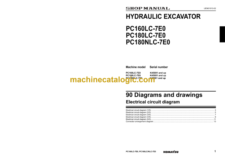 Model: PC160LC-7E0 PC180LC-7E0 PC180NLC-7E0