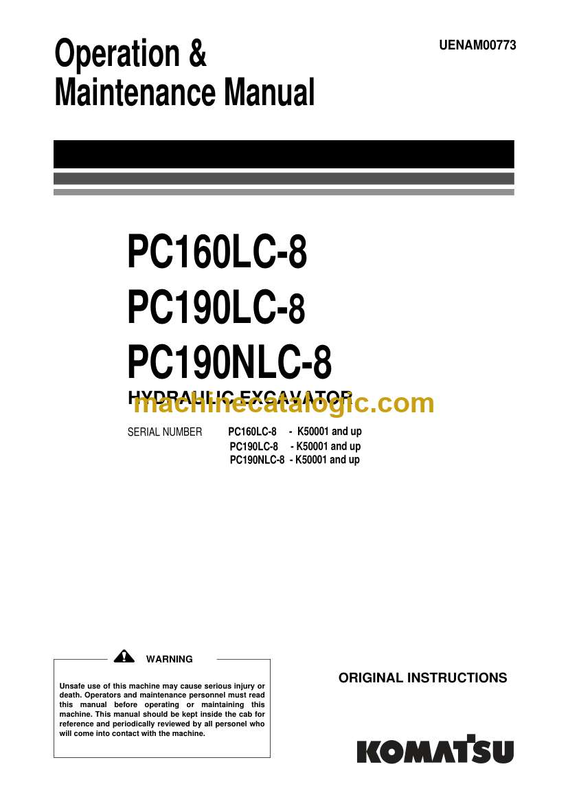 Model: PC160LC-8, PC190LC-8, PC190NLC-8 Hydraulic Excavator