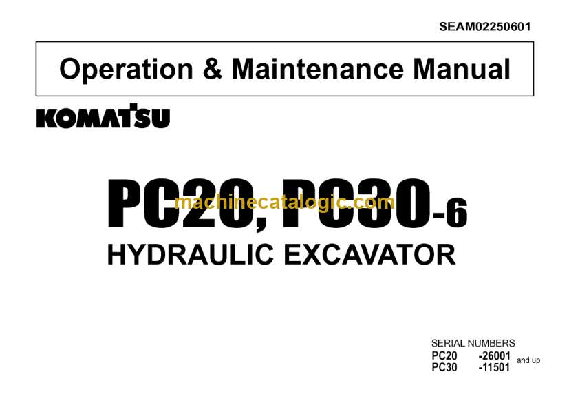 Komatsu PC20-6, PC30-6 Hydraulic Excavator Operation and Maintenance Manual (SEAM02250601)
