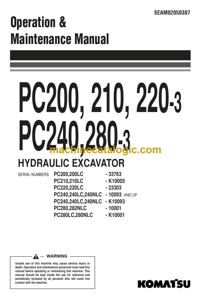 Komatsu PC200-3, PC210-3, PC220-3, PC240-3, PC280-3 Hydraulic Excavator Operation and Maintenance Manual (SEAM02050307)