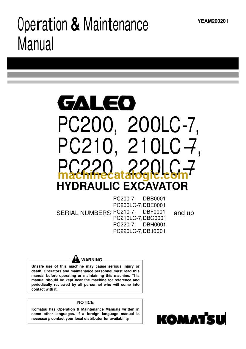 Model: PC200-7, PC200-7, PC210-7, PC210LC-7, PC220-7, PC220LC-7 Hydraulic Excavator