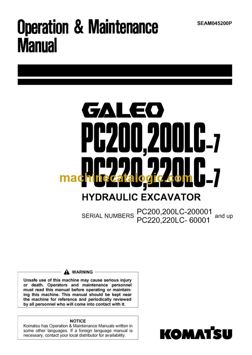 Model: PC200-7, PC200LC-7, PC220-7, PC220-7 Hydraulic Excavator