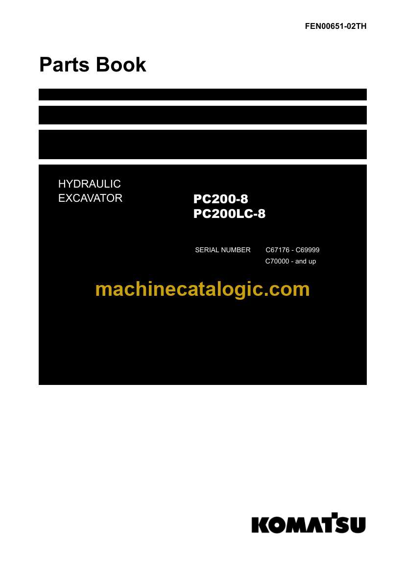 Komatsu PC200, PC200LC-8 Hydraulic Excavator Parts Manual (FEN00651-02TH) (C70000 and up)