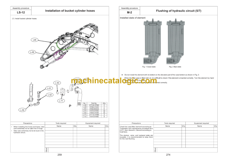 LS-16 Installation of bottom dump hose and grease feed hose between arm and bucket