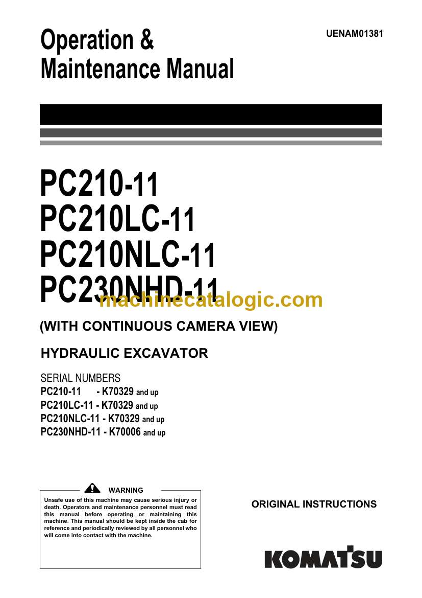 Model: PC210-11, PC210LC-11, PC210NLC-11, PC230NHD-11 Hydraulic Excavator