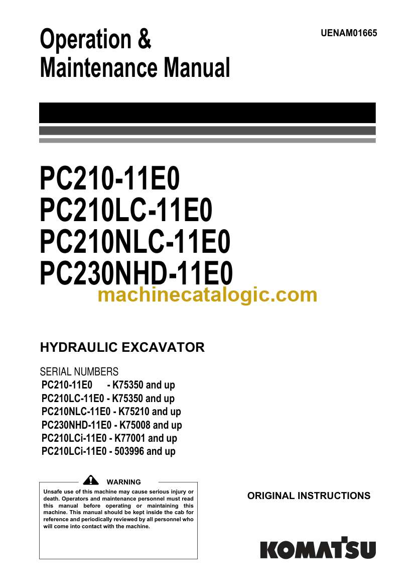 Model: PC210-11E0, PC210LC-11E0, PC210NLC-11E0, PC230NHD-11E0 Hydraulic Excavator