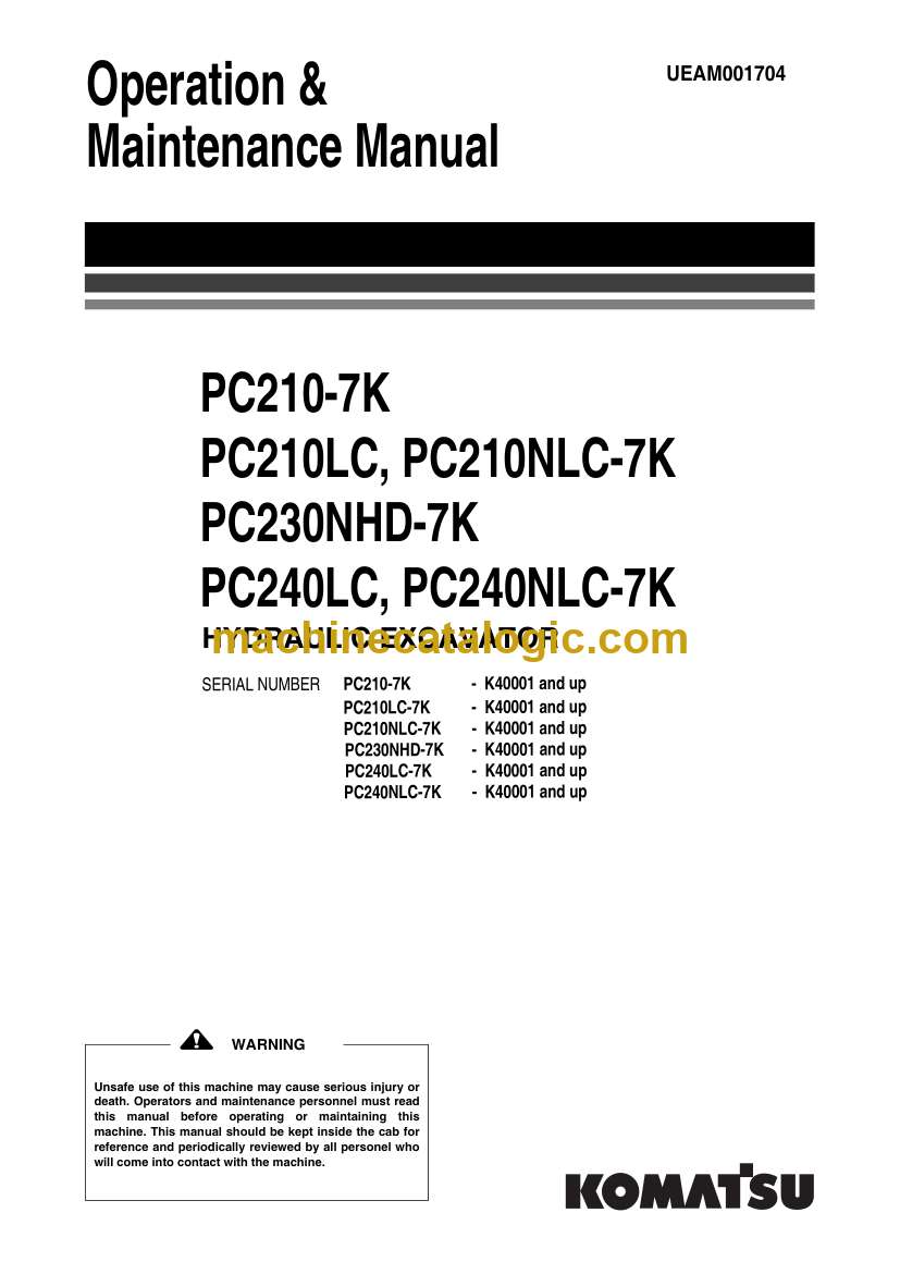 Model: PC210-7K, PC210LC, PC210NLC-7K, PC230NHD-7K, PC240LC, PC240NLC-7K Hydraulic Excavator