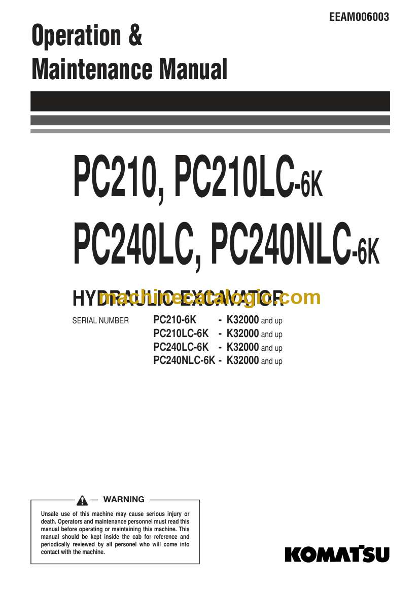 Model: PC210, PC210LC-6K, PC240LC, PC240NLC-6K Hydraulic Excavator