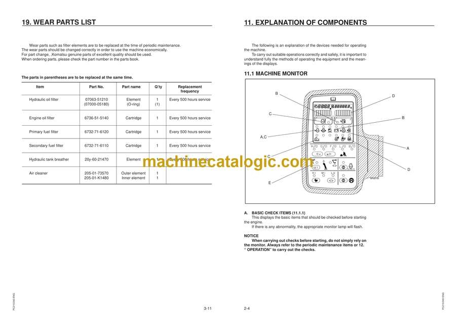19. Wear parts list …………………………………………………………………………………………………………………..3-11