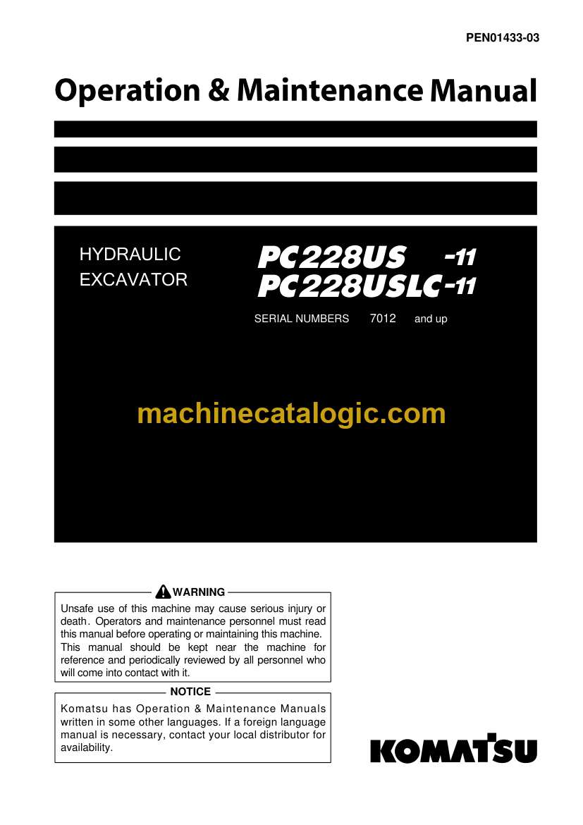 Model: PC228US-11, PC228USLC-11 Hydraulic Excavator