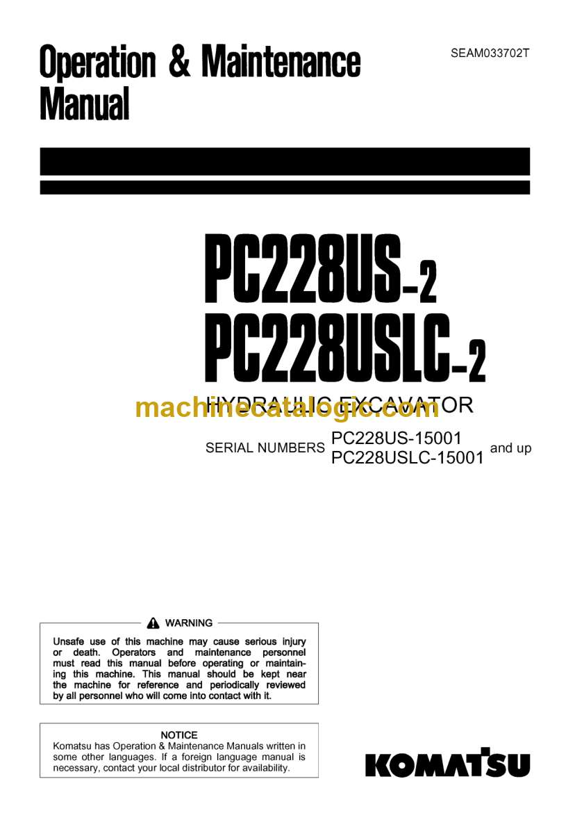 Model: PC228US-2, PC228USLC-2 Hydraulic Excavator