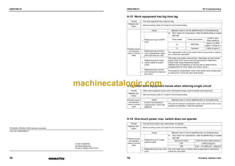 Komatsu PC228US-3E0 PC228USLC -3E0 Galeo Hydraulic Excavator Shop Manual (UEN01418-03)