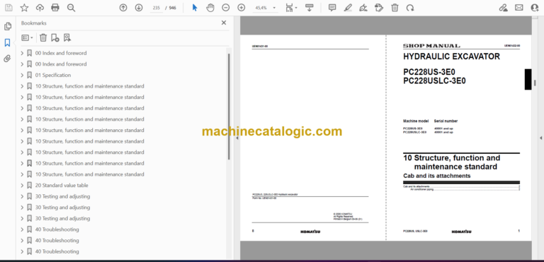 Komatsu PC228US-3E0, PC228USLC-3E0 Galeo Hydraulic Excavator Index: