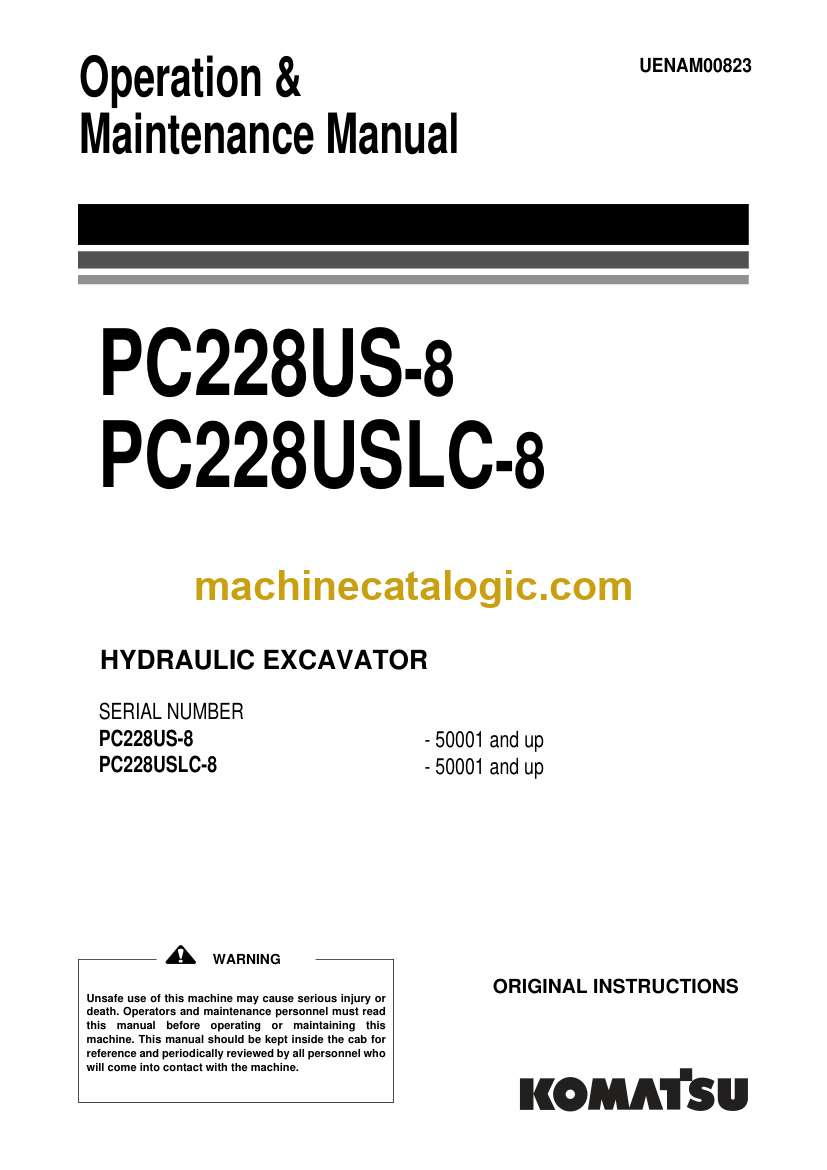 Komatsu PC228US-8, PC228USLC-8 Hydraulic Excavator Operation and Maintenance Manual (UENAM00823)