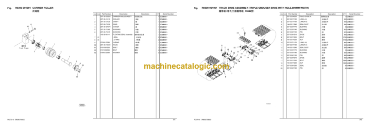 Komatsu PC270-8 Hydraulic Excavator Parts Book (DZAM0001 and up)