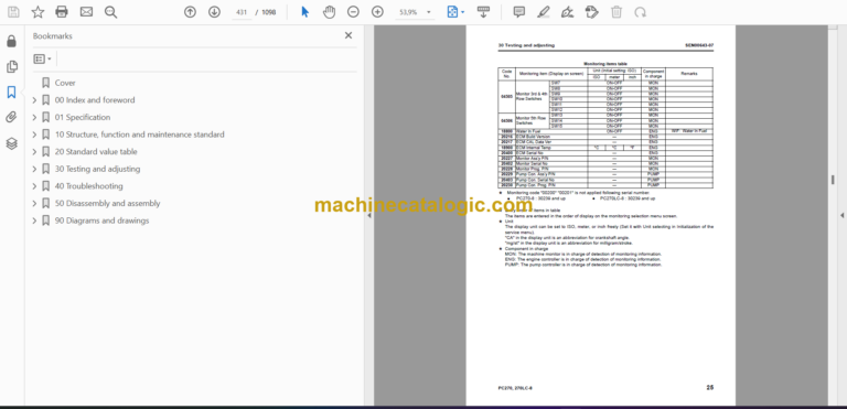 Komatsu PC270-8 PC270LC-8 Hydraulic Excavator Shop Manual (SEN00420-16)