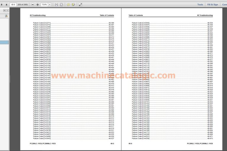 Komatsu PC290-11E0, PC290LC-11E0, PC290NLC-11E0 Excavator Shop Manual Index