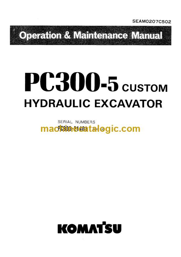 Komatsu PC300-5 custom Hydraulic Excavator Operation and Maintenance Manual (SEAM0207C502)