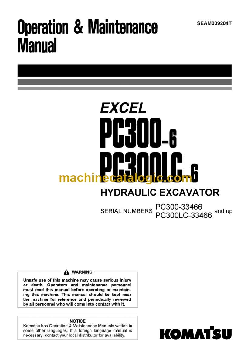Model: PC300-6, PC300LC-6 Hydraulic Excavator