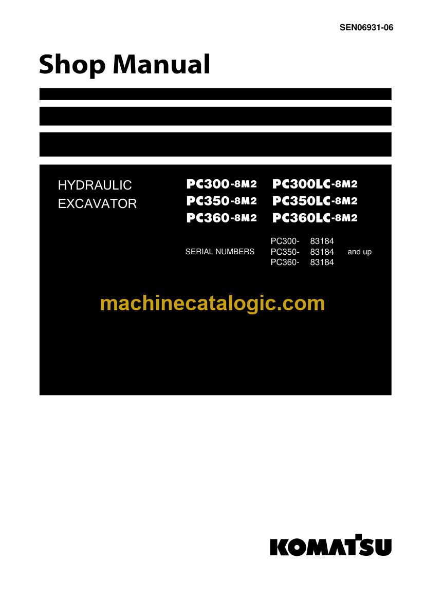 Komatsu PC300-8M2, PC300LC-8M2, PC350-8M2 Crawler Excavator Shop Manual (SEN06931-06)