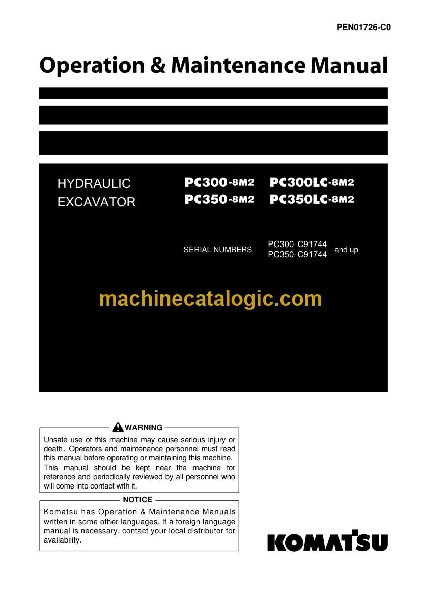 Komatsu PC300-8M2, PC300LC-8M2, PC350-8M2, PC350LC-8M2 Hydraulic Excavator Operation and Maintenance Manual (PEN01726-C0)