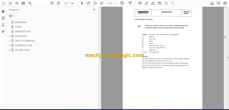 COVER INTRODUCTION FOREWORD TABLE OF CONTENTS HYDRAULIC PLAN ELECTRIC PLAN
