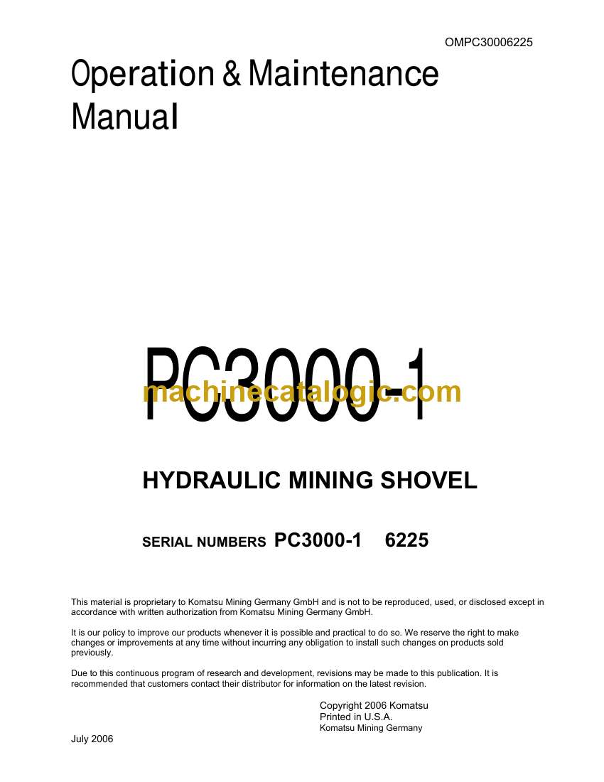 Komatsu PC3000-1 Shovel Operation and Maintenance Manual (OMPC30006225D)