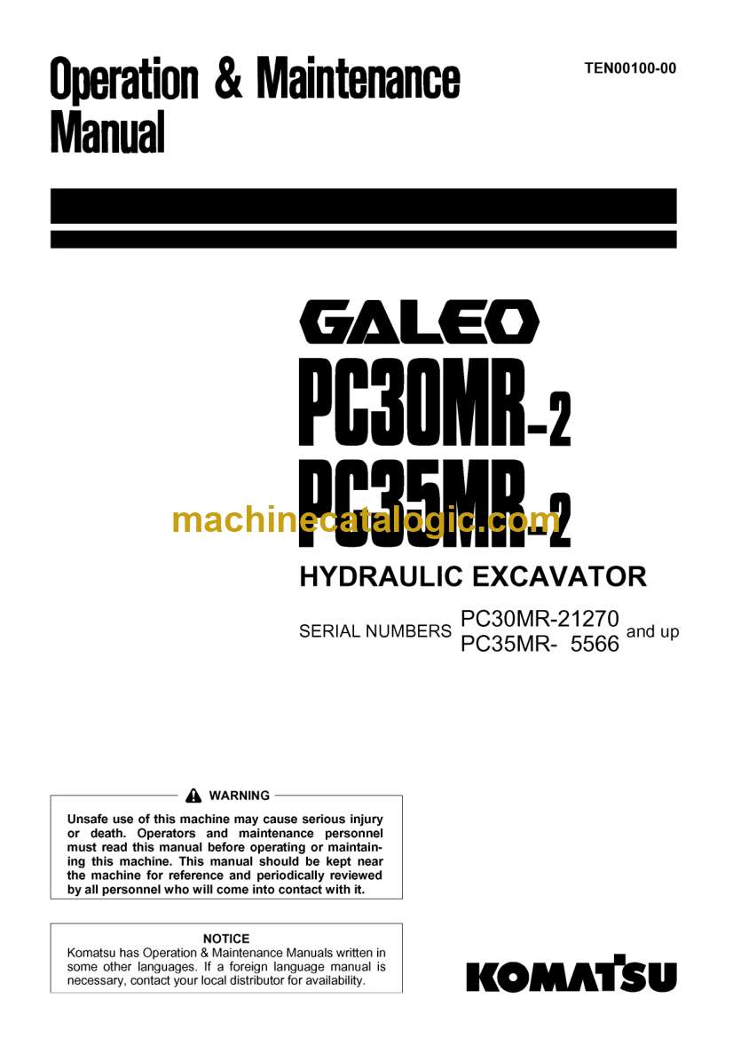 Model: PC30MR-2, PC35MR-2 Hydraulic Excavator