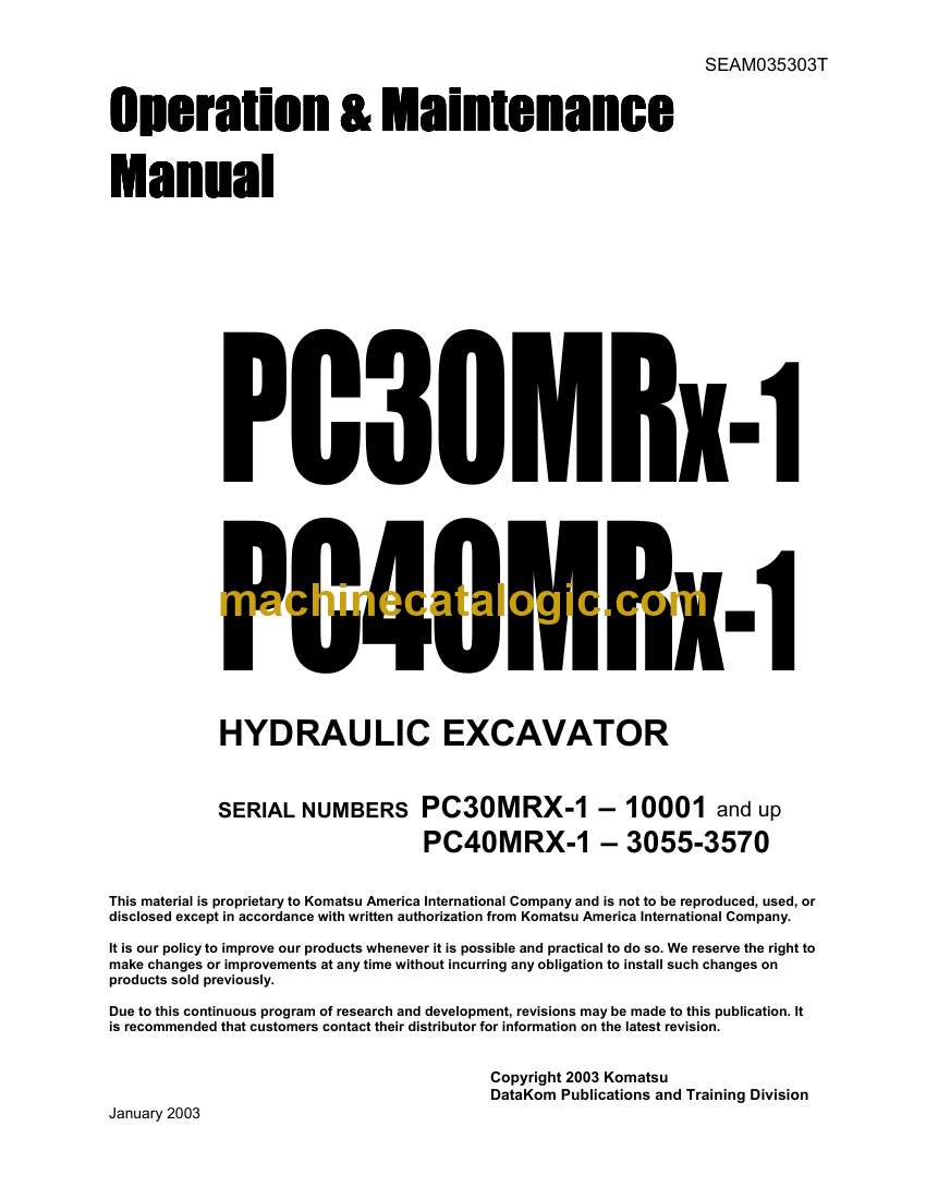 Model: PC30MRX-1, PC40MRX-1 Hydraulic Excavator