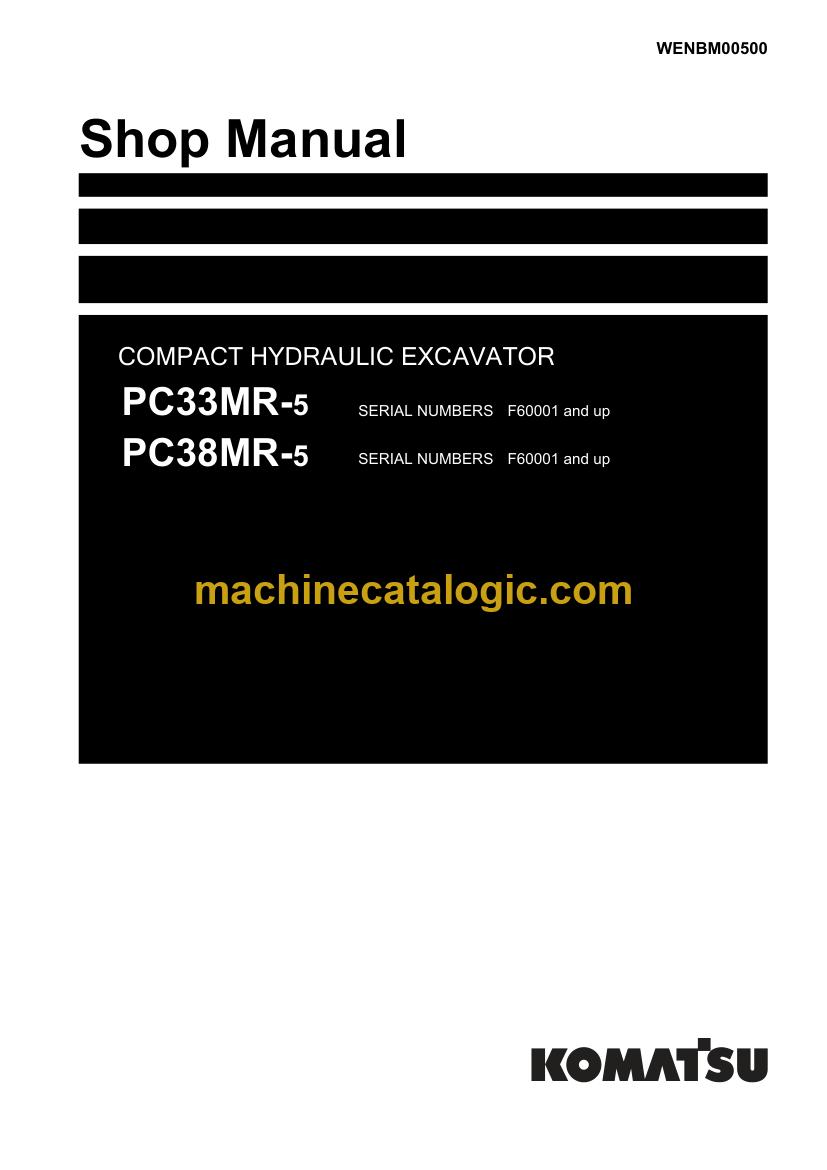 A: The Komatsu PC33MR-5, PC38MR-5 Crawler Excavator Shop Manual (WENBM00500) is written for those two model designations; you’ll still want to match your machine’s ID plate and any local options against the manual’s model listing.