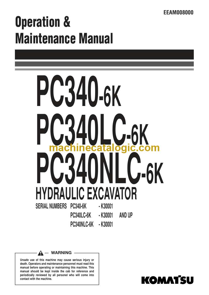 Komatsu PC340-6K, PC340LC-6K, PC340NLC-6K Hydraulic Excavator Operation and Maintenance Manual (EEAM008000)