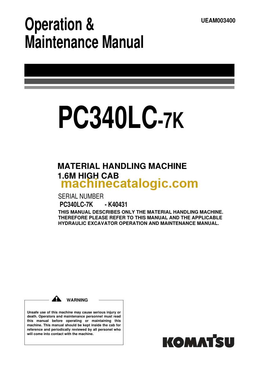 Komatsu PC340-7K Hydraulic Excavator Operation and Maintenance Manual (UEAM003400)