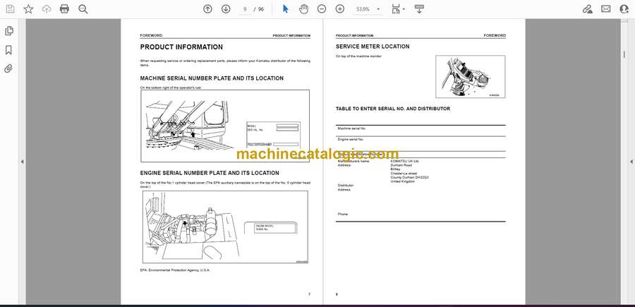 MACHINE SERIAL NUMBER PLATE AND ITS LOCATION………………………………………………………………. 7