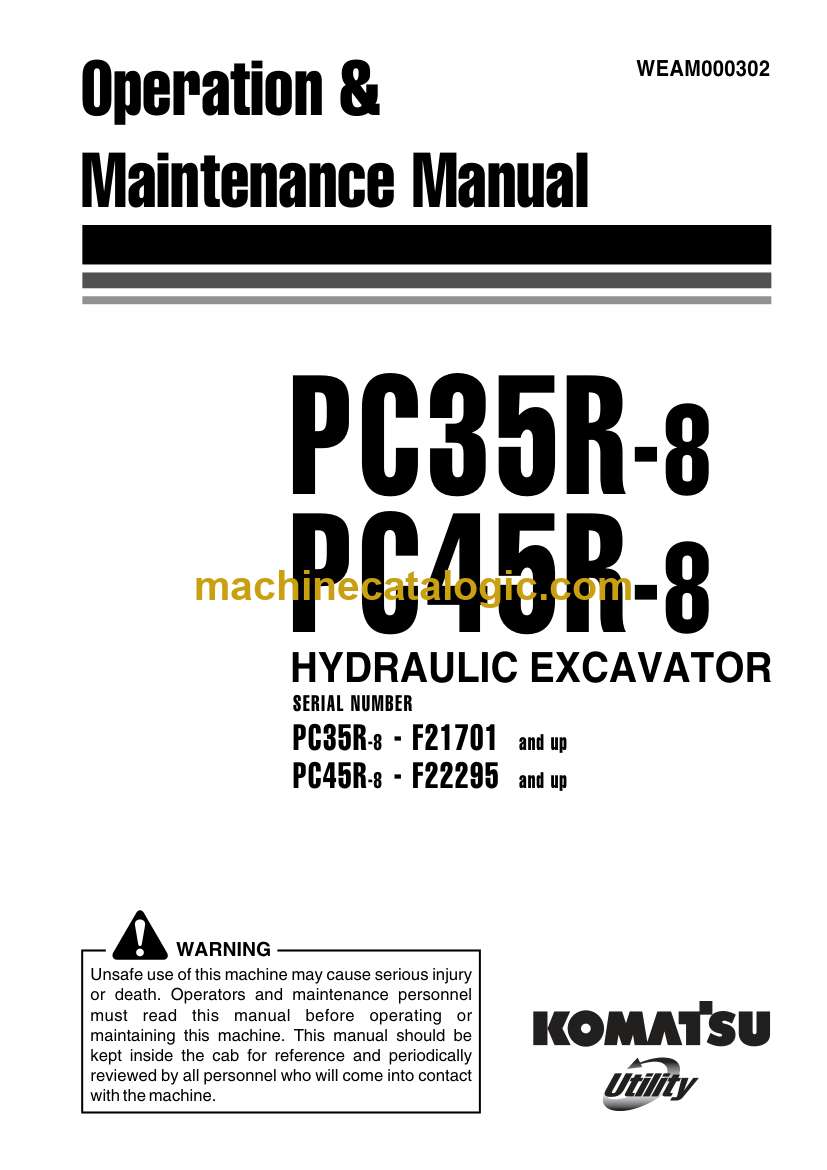 Model: PC35R-8, PC45R-8 Hydraulic Excavator