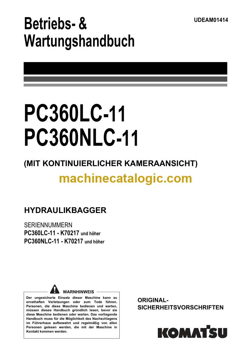 Komatsu PC360NLC-11, PC360NLC-11 Operation and Maintenance Manual (UENAM01414)
