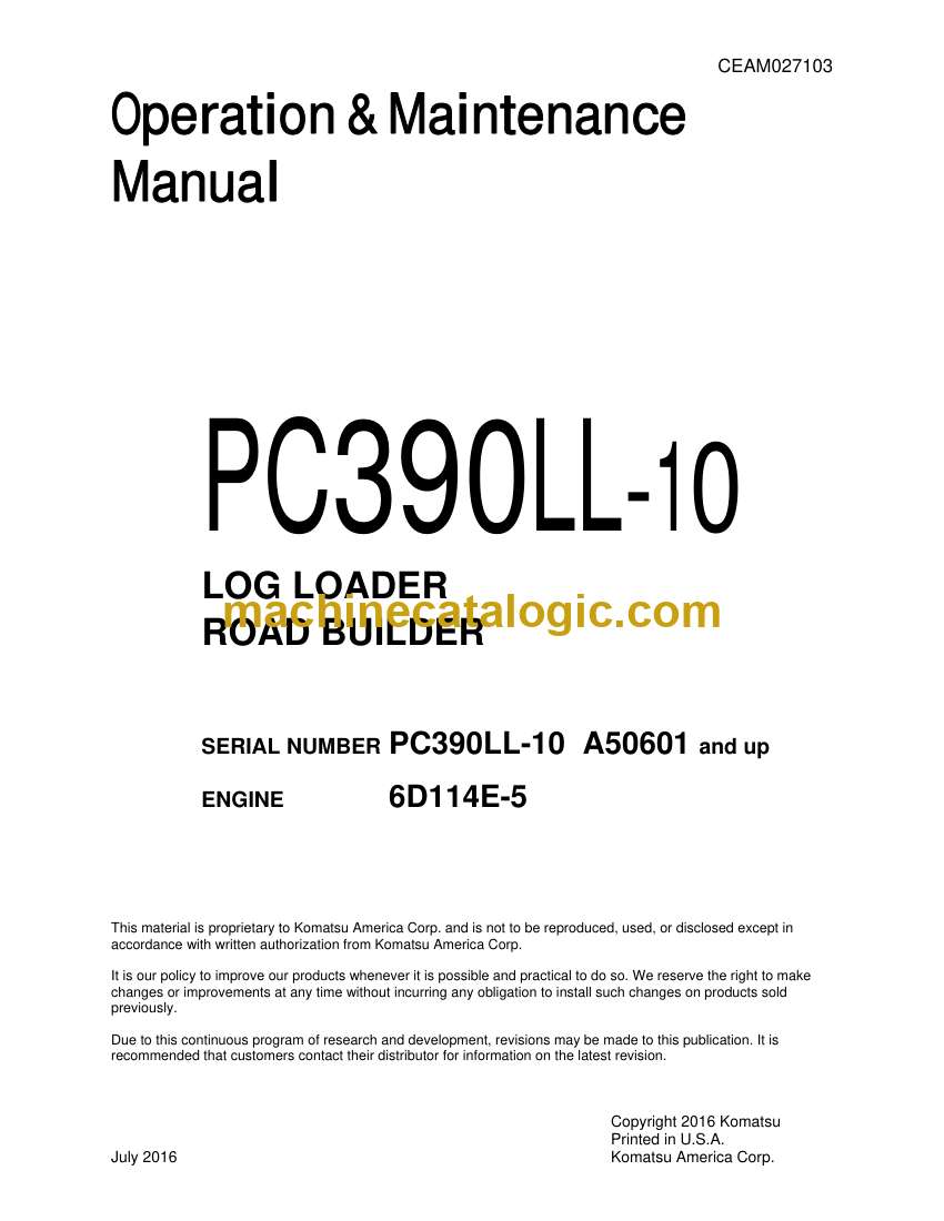 Komatsu PC390LL-10 Log Loader Operation and Maintenance Manual (CEAM027103)