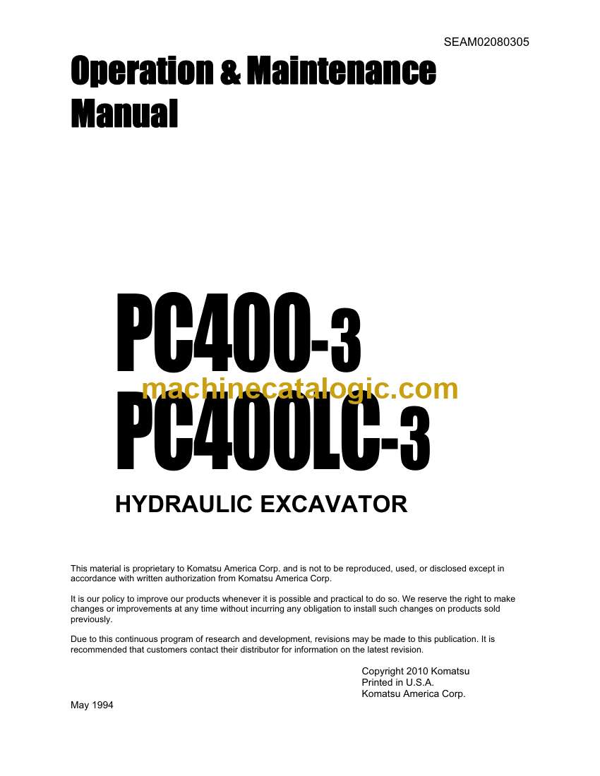 Komatsu PC400-3, PC400LC-3 Hydraulic Excavator Operation and Maintenance Manual (SEAM02080305)