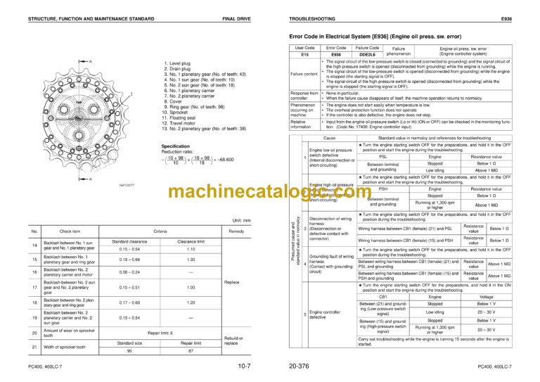Komatsu PC400-7 PC400LC-7 Hydraulic Excavator Shop Manual (SEBM037603)
