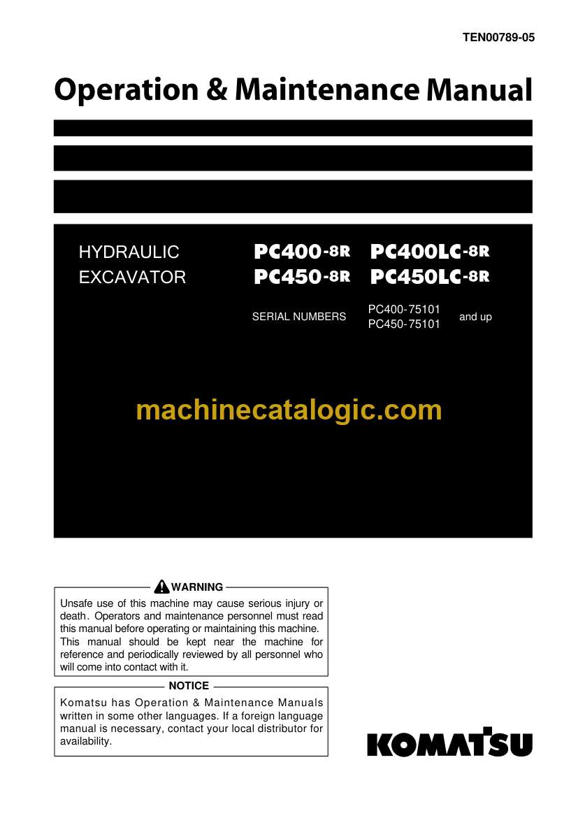 Model: PC400-8R, PC400LC-8R, PC450-8R, PC450LC-8R Hydraulic Excavator