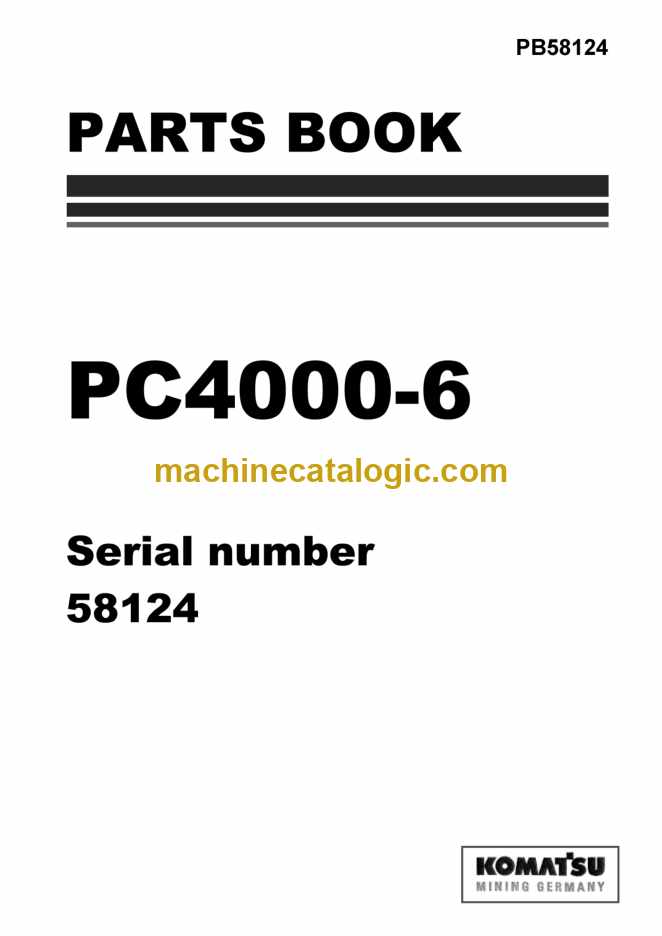 Komatsu PC4000-6 Hydraulic Excavator Parts Manual (PB58124)